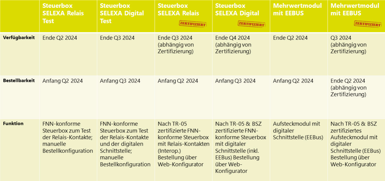 Um diese Anforderung als Messstellenbetreiber effizient umsetzen zu können, gilt es die bis dahin verbleibende Zeit bestmöglich zu nutzen. Theben Smart Energy unterstützt dabei mit technischen Lösungen aus einer Hand. Unser performantes Smart Meter Gateway CONEXA wird dabei um eine FNN-konforme Steuerbox SELEXA (mit Relaiskontakten oder zusätzlicher digitaler Schnittstelle über EEBus) oder das Mehrwertmodul (mit EEBus) ergänzt. Beide Lösungen erfüllen alle Anforderungen der netzdienlichen und marktorientierten Steuerung. Insbesondere ist im Fall der Steuerbox mit digitaler Schnittstelle oder dem Mehrwertmodul auch die stufenlose Steuerung bereits Bestandteil der Lösung.