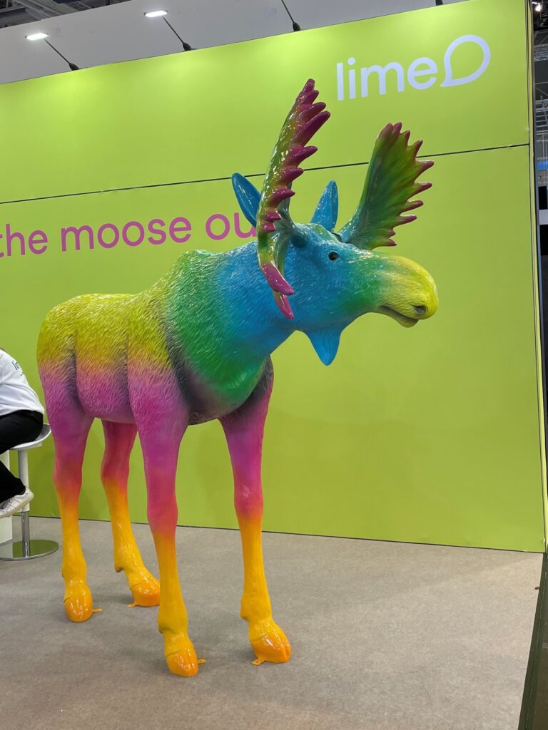 Ein bunter Elch – Markenzeichen von Lime Technologies auf der E-world. (Bild: sig media GmbH & Co.KG)