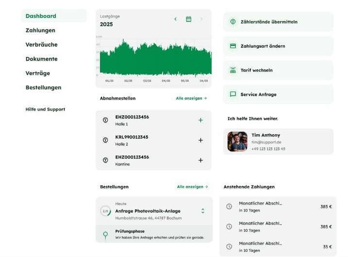 Das epilot B2B-Portal des Kölner Plattformanbieters will diese Lücke schließen, indem es den aus dem Privatkundenbereich bekannten digitalen Self-Service-Standard auf das B2B-Geschäft anwendet. So bietet die Portallösung für Industriekunden mit RLM-Tarifen eine detaillierte Verbrauchsanalyse auf Basis von 15-Minuten-Lastgängen sowie die Möglichkeit, mehrere Standorte, Produktionslinien und Zähler vergleichend darzustellen. Gemeinsame Firmenaccounts mit rollenbasierten Berechtigungen sollen zudem eine differenzierte Nutzung durch verschiedene Unternehmensbereiche ermöglichen.