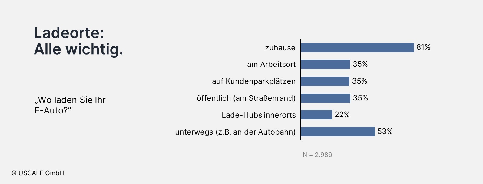 Der Anteil der Zuhauselader im wichtigen Mehrfamilienhaussegment ist jedoch im letzten Jahr nur minimal angestiegen und liegt den Ergebnissen nach aktuell bei gut 50 Prozent. Dabei ging der marginale Zuwachs auf Dienstwagenfahrer:innen zurück, die aufgrund neuer Car-Policies auf ein E-Auto umgestiegen sind, ohne dass die individuellen Lademöglichkeiten berücksichtigt wurden. Somit bleibt der Ausbau der Ladeinfrastruktur in Mehrfamilienhäusern deutlich hinter den Erwartungen zurück.
