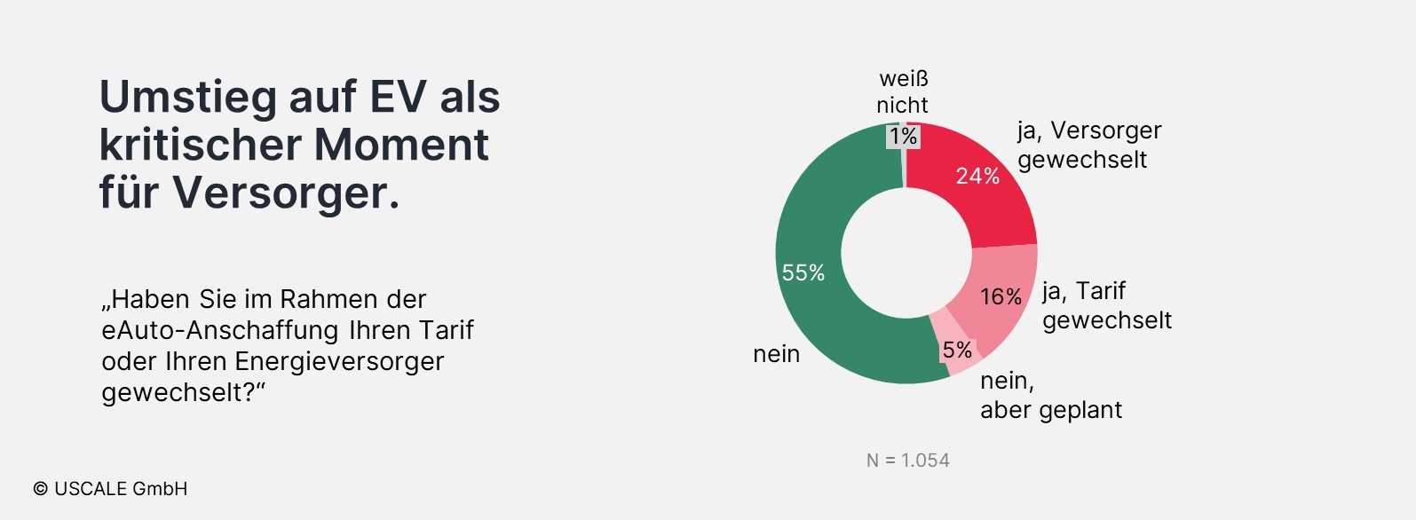 Auch für so manchen Versorger kann der Entschluss ihrer Kund:innen sich ein E-Auto anzuschaffen zum kritischen Moment werden: Rund ein Viertel der befragten E-Autofahrer:innen nahm den E-Autokauf zum Anlass, den bisherigen Versorger zu wechseln. Aus Sicht einiger Versorger kann somit der Zeitpunkt, an dem Sich ihre Kund:innen für neues Elektrofahrzeug entscheiden, zum potenziellen Risiko für die Kundenbindung werden. (cp)