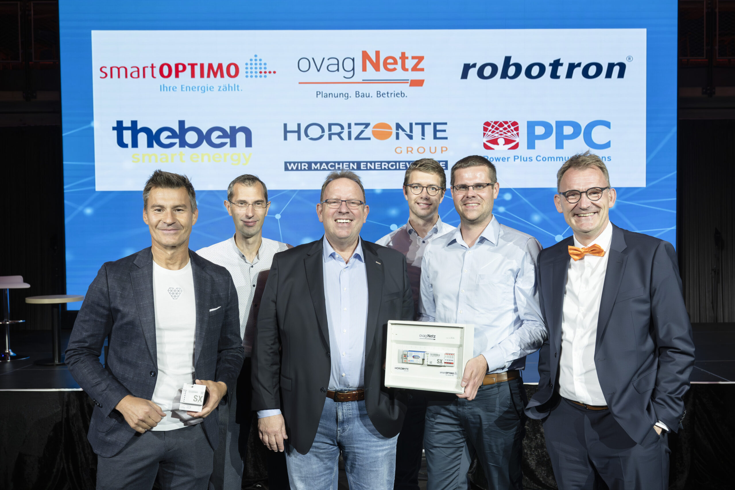 Gemeinsam steuern: Ruwen Konzelmann (Theben Smart Energy), Dr. Christian Hofmann (Robotron), Ingo Schönberg (PPC), Simon Kreutzer (smartOPTIMO), David Tetz (ovag Netz), Jochen Buchloh (Horizonte-Group) sehen sich bereit für den Steuerrollout (v.l.n.r.). (Bild: smartOPTIMO GmbH & Co. KG)