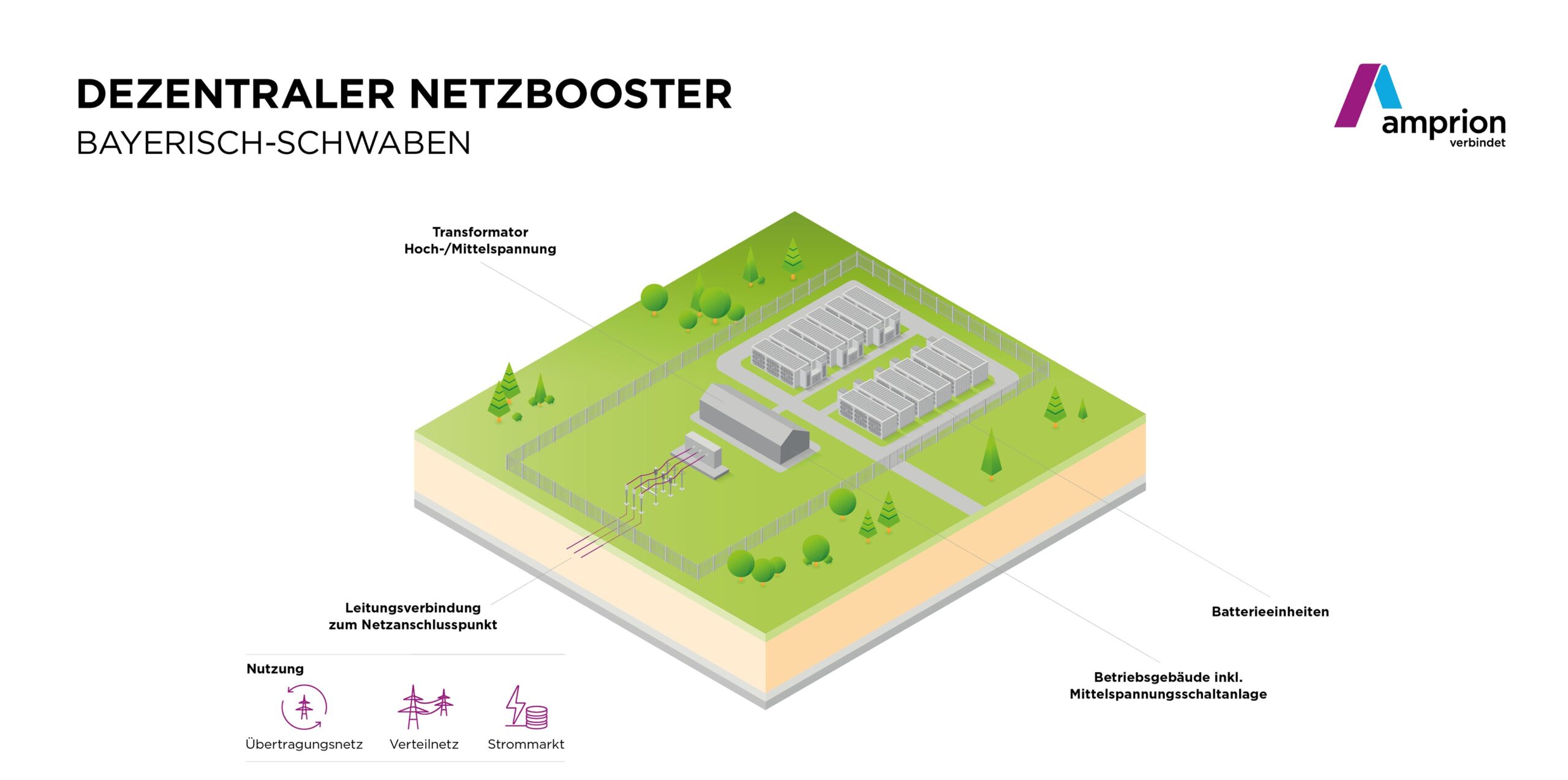 Das Kooperationsvorhaben von Amprion, E.ON und der LEW Verteilnetz (LVN) verfolgt mit dem Netzboosterbauprojekt in Bayerisch-Schwaben das übergeordnete Ziel, das Übertragungsnetz bei Engpässen zu entlasten und stabil zu halten. Hierzu nutzt der sogenannte Netzbooster Großbatteriespeicher, die innerhalb von Sekunden aktiviert werden können. Auf diese Weise sollen sich Netzengpässe kurzfristig beheben lassen und Stromleitungen schon im Normalbetrieb höher auslastbar sein. In der Folge sind weniger steuernde Eingriffe in den Netzbetrieb erforderlich, was wiederum auch die Redispatchkosten reduziert.