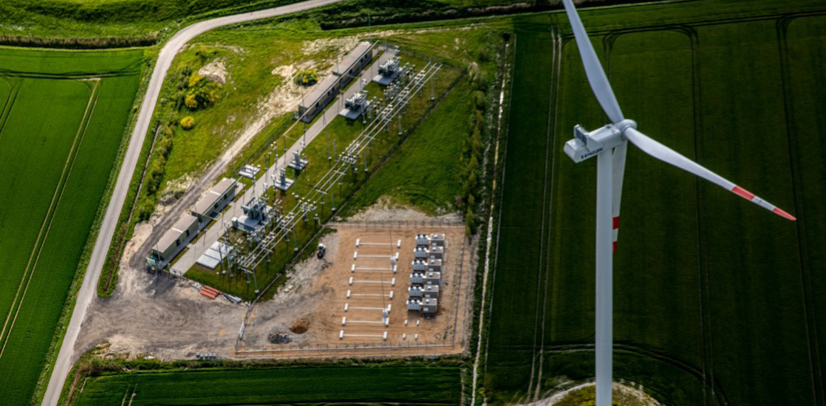 Eigenes Umspannwerk des Bürgerwindpark Reußenköge mit 300MW Leistung und 16MW Speicherkapazität. (Foto: Dirkshof)